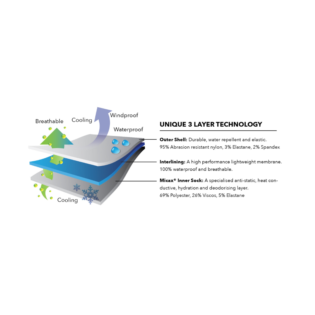 DAKY Socks incorporate our 3-layer technology allowing your feet to enjoy freedom of movement, yet are wind resistant and waterproof, while still being highly breathable. These socks will keep your feet dry and comfortable in any environment or weather condition. Perfect for Everyone Everyday with our performance socks which been approved for Masah and conform to all the requirements specified.